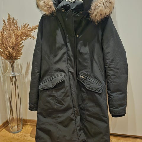 Selger min eksklusive Woolrich-parka med stor, ekte pelskant. Jakken er brukt maks 3 ganger og fremstår som helt som ny. Ingen flekker, lukt eller slitasje.