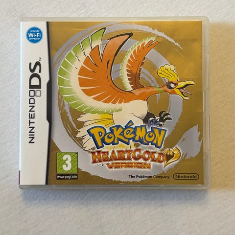 Nintendo DS Pokémon HeartGold spill for Nintendo DS. Spillkassetten har en gullfarget bakgrunn med Pokémon-logo og er kompatibel med Nintendo DS-spillsystemet.
