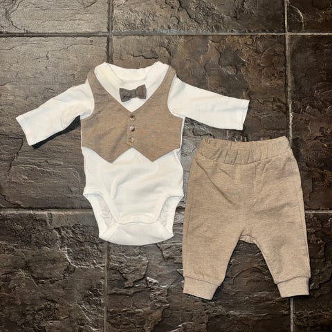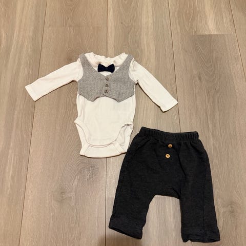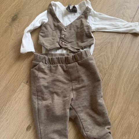Pent sett bestående av dressbukse og body med sydd på vest og sløyfe fra H&M.
