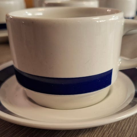 Søkeord Figgjo Norway Figgjo 2000 vitr porselen kopp asjett kaffekopp kaffefat blå kant norsk porselen designkopp servise kafékopp hotellporselen robust retro enkel stil skandinavisk