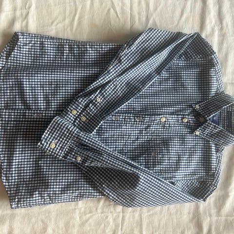 Marineblå penskjorte med ruter i str 134-140/10år fra nameit selges. 50kr