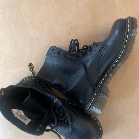 Nypris ca 1500-2000. I god stand, med noe bruksmerker. Litt av det ekstra stoffet i hælen er løsnet,men skinnet i selve skoen er helt. Se bilder.