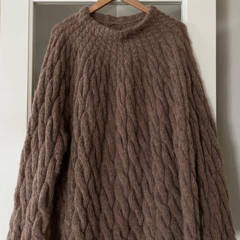 Nydelig cardigan selges pga den er for stor til meg.Tilsvarer str large. Er bestillt ferdig strikket komplett med garnpakke, som er 100% børstet alpakka.