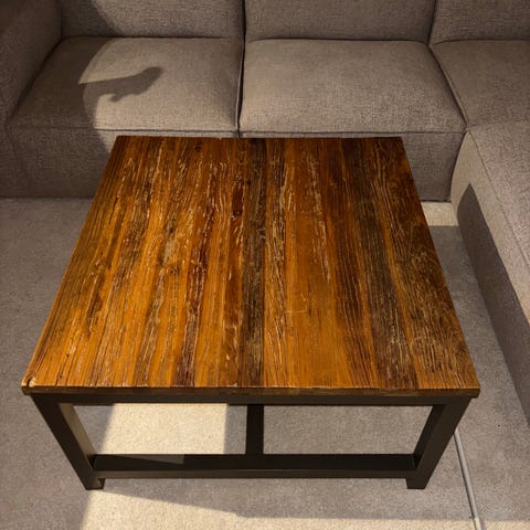 Flott og minimalistisk salongbord med en finerplate i bjørk tilskåret av møbelsnekker