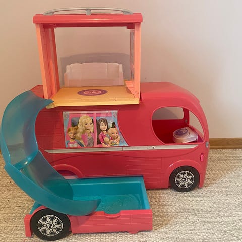 Jentungen selger alt hun har av Barbie. Så her kan du få masse. Pakken består av 3etasjeses Barbie hus med heis,Barbie klesskap med fullt av klær,sko,vesker ,smykker osv.. Dette er bærbart,da det er håndtak på toppen. (se bilde) Hest med bevegelig hode samt stall (se bilde) Barbie med sin egen Cafe. Mange Barbie dukker :) Huset har noen små skavanker,men ikke noe du merker under lek eller legger merke til om du ikke skikkelig leter etter og finne feil,og da vil jeg også kalle de små. Kan selges separat, men helst samlet..😊 Bare send meg en melding om det er noe du lurer på😊 1500,- for alt😊