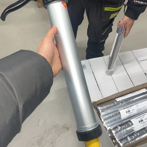 Fugemassepistol for 600 g pølser. Trykkluftdrevet.
