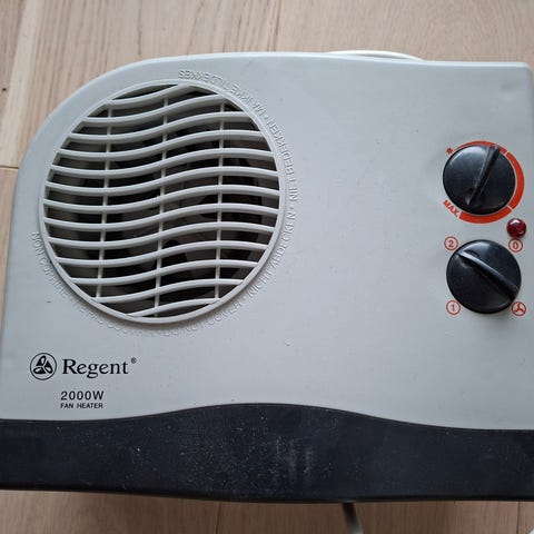 Clas Ohlson 36-6513 turbovifteovn med effekt på 2000 watt. Kompatibel med 220-240V, 50-60Hz strømforsyning. Hvit farge med svart detaljer. Egnet for oppvarming av rom.