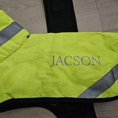 WeatherBeeta hundedekken selges billig. Dekkenet er blått med røde detaljer og laget for å gi beskyttelse mot de fleste værforhold.