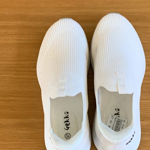 Joggesko med en stjerne på siden med et glitter baktil. Skoene er hvite.
