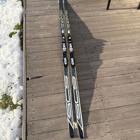 Selger skiutstyr som består av ski, 195 cm, staver 135 cm og sko str. 37,5. Skiene er pent brunt, men kan enda brukes til mange fine turer i marka. Skiene må smøres på gammelmåten og kan utstyres med felle. Stødige og gode ski av kjent merke. Må hentes på adresse etter avtale. Sko passer til montert binding.