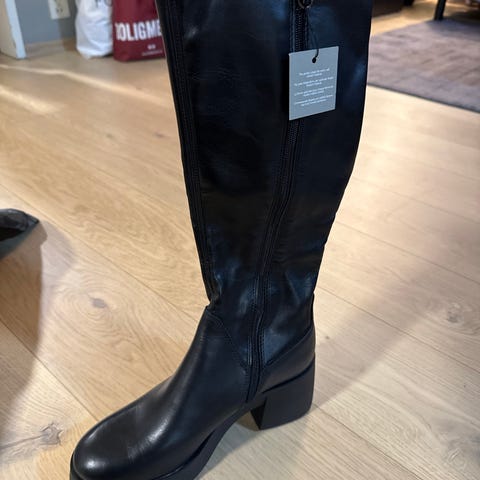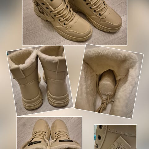 Gode, stilige vintersko / boots fra Black, str 38. Kun brukt to ganger. Mykt fôr, grov såle med godt grep, glidelås både langs innsiden og foran, så kan man velge hvordan man tar de av og på. Mykt, komfortabelt skaft.