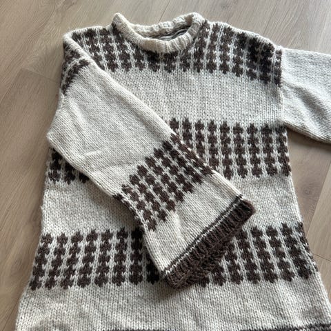 Strikket i original garn og selges til garnpris. Modellen heter Charlie Saga .