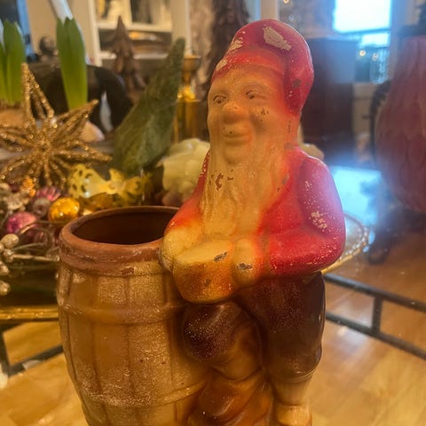 Stor gammel terrakottanisse, høyde 38 cm. Må hentes.