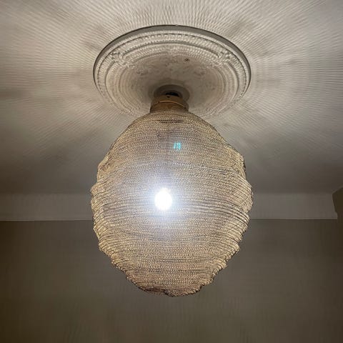 Hver taklampe er et signert originalverk i italiensk kreppapir. Gjennom en tidkrevende prosess utforskes balansen mellom organiske former og moderne norsk estetikk.