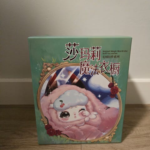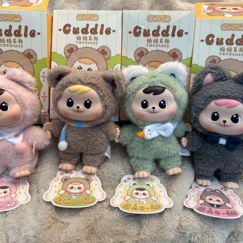 En liten (ca. 15 cm) bamse av Petilil. Kjøpt i Japan. Er en plastikk-utviklingsstein sydd på så passer ikke å gi til små barn uten at denne fjernes først.