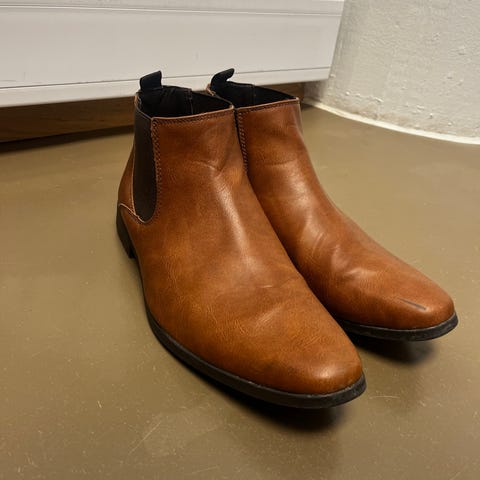Dr. Martens støvler i størrelse 43 laget av brunt skinn. Støvlene har en robust såle med godt grep og tradisjonell snøring. Egnet for bruk som arbeidssko eller fritidssko.