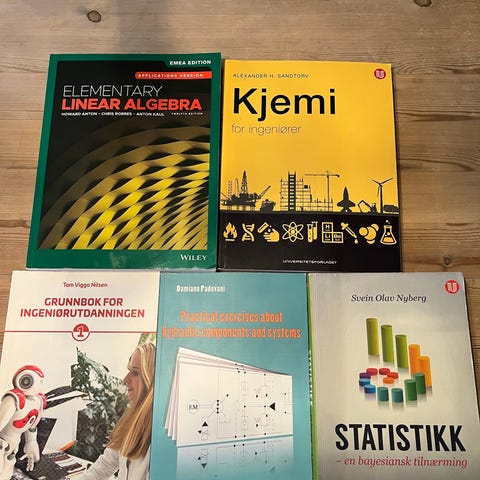 Flere bøker fra ingeniørstudiet selges grunnet ikke i bruk.