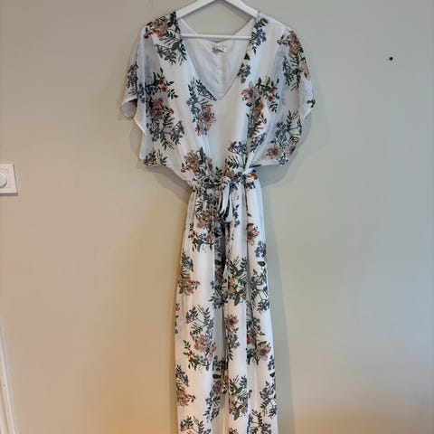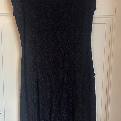 Selger en fin lang kjole som er lite brukt. Litt smock under brystet og på ryggen, og knyting i nakken.