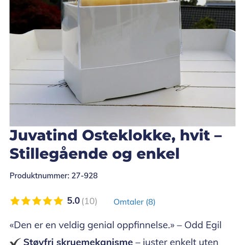 Nesten ikke brukt. Ostene følger ikke med 😅 Kun for å vise størrelse på osteklokken. 😃