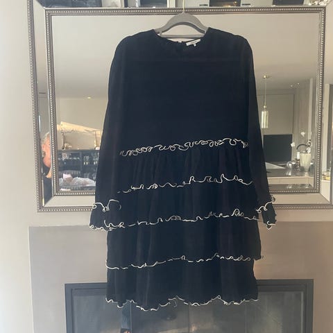 Ganni kjole. Stor i str. Overdelen er i krepp stoff med puffermer.