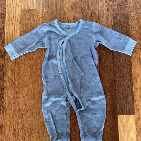 Hust & Claire ull babydress i grønn farge (khaki), størrelse 56. Passer for både gutter og jenter. Laget av ull/bambus.