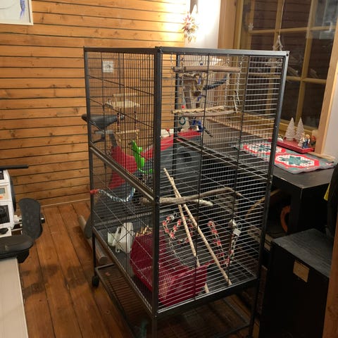 Buret er demontert. Bildet av montert bur er kun eksempel for å vise hvordan det ser ut.