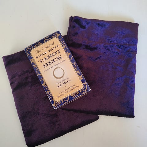 Kjempe fin tarot pose i sort fløyel med pentagram motiv brodert med sølv tråd.