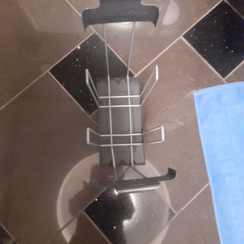 Metallstativ som holder opp bøker og nettbretter på en komfortabel måte. Passer perfekt til lesesesjoner eller digitale aktiviteter. Pris: 100 kroner.