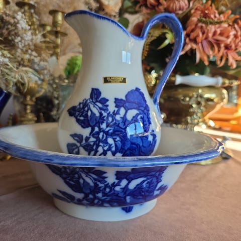 Keramiske vaser i ulike størrelser. To vaser har blå og hvite horisontale striper, mens den tredje er mørkeblå med rillet overflate. Egnet til dekorasjon og blomsterarrangementer.