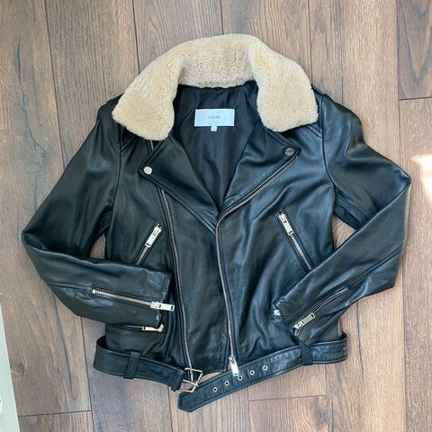 Donna skinnjakke, størrelse 34. Laget i ekte skinnmateriale. Designet for kvinner. Lappen er på.