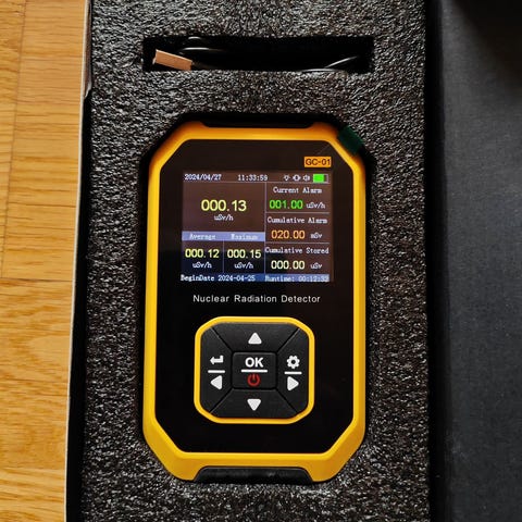 Ny og ubrukt geigerteller, 3 i ett måler, siste modell fra Fnirsi med nytt og stilig design. Elektromagnetisk strålingsdetektor som viser bla. elektriske og magnetiske feltstyrker, RF effekter og temperaturer. Viser verdier for kjernefysisk stråling, som gamma, beta og ioniserende stråling (gammastråling) og verdier for mikrobølgefelt. Med denne kan du måle radioaktiv stråling, og ulike andre former for ioniseriende stråling som stråling fra mobiltelefoner, sendemaster, wifi routere og f.eks. mikrobølgeovner. Måler også temeraturer. Oppladbart batteri. Kan kobles til pc med medfølgende usb kabel. Ligger i uåpnet og forseglet eske. Glimrende julegave til teknonerden som vil følge med på ulike stråleverdier i omgivelsene. Gratis frakt og forsikring med sporingsnummer fra Postnord. Kan pakkes pent inn i julepapir med sløyfebånd på og til og fra lapp på viss ønskelig.