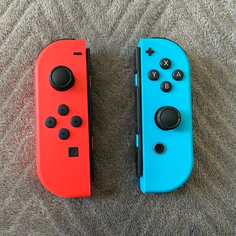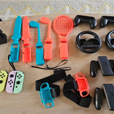 Pent brukt OEM Joy-Con pair (lilla/rosa) selges med stropper.
