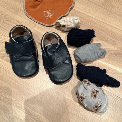 Pent brukte Enfant blå tøfler str 22. Ekte skinnsko. Uten for. Med borrelås på sidene for lettere på og avkledning. Fra røykfritt hjem.