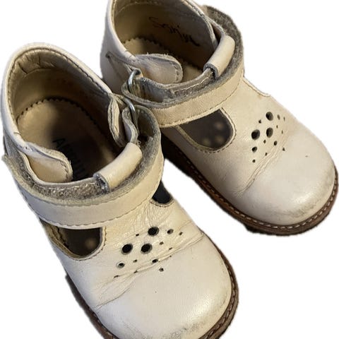 Angulus sandaler til jente, størrelse 25. Sandalene har skinnfri og innersålen av skinn, skosåle av naturgummi som er antiskli. Farge mot gammelrosa, lakkpreget overside. Sandalene har justerbar borrelås for god passform. Egnet for sommerbruk eller pensko til jul. Gummisåle under er noe mørk/misfarget, men ellers pene. Mye bruk igjen.