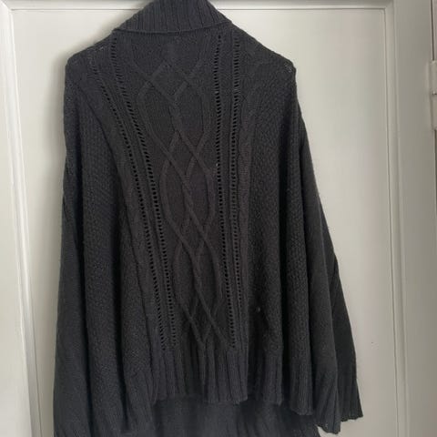 H&M poncho i svart farge, størrelse one size. Fin strikkemønster.