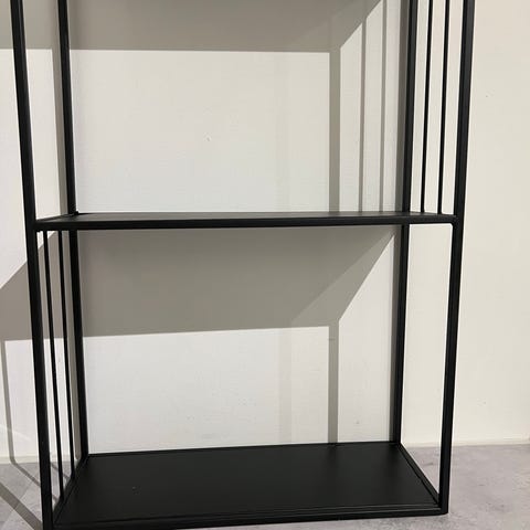 Stilrent vegghylle med lærreimer selges. Hyllen er i god stand og passer perfekt til