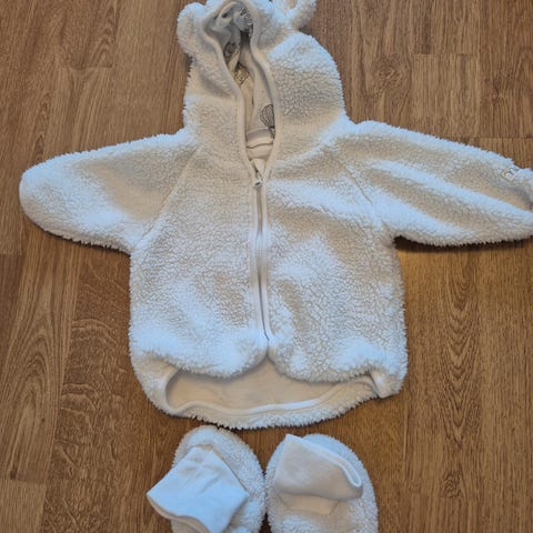 Myk og deilig jakke til en liten baby. Foret med plysj på innsiden.