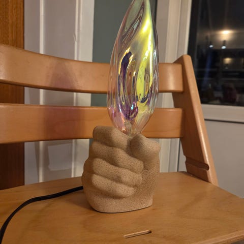 lampe med unik design. Lampen har en glassbase med dekorative detaljer og en tekstilskjerm. Passer til innendørs bruk som bordlampe. God julegave