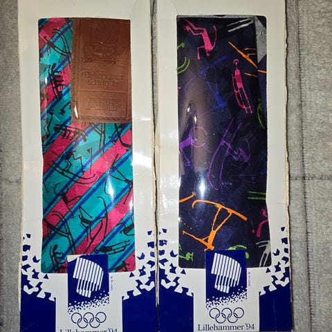 Bukseseler med motiv fra OL på Lillehammer 1994. Skinndetalj i ryggen.