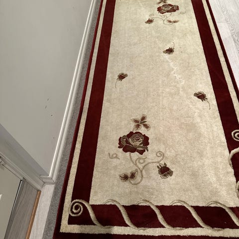 Lite brukt teppe i nydelige duse farger. Vært i gangen men nå blir det kun fliser !