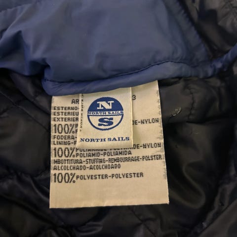 Blå med grå detaljer. Tror at det er laget PrimaLoft isolasjon for varme// kan brukkes til ulike friluftsaktiviteter.