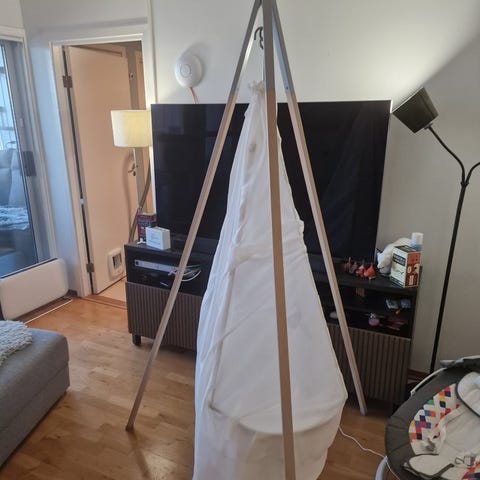 - Inkludert Vugge, Madrass, Stativ og Himmel.