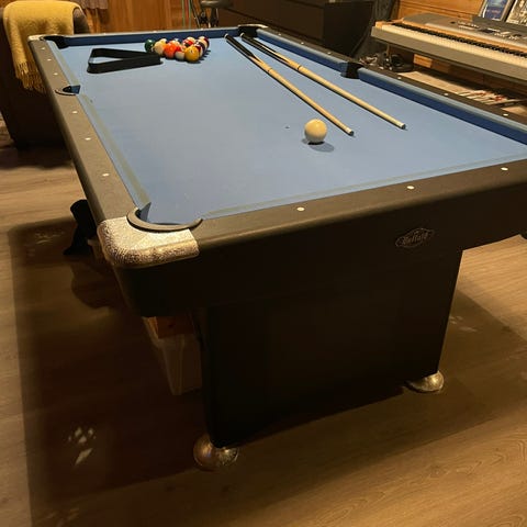 Inkluderer biljardkøer, kritt og tilbehør. Passer til innendørs bruk.