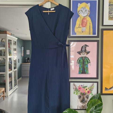 Lang, plommefarget kjole med v-hals. Str M. Faller veldig pent på kroppen. Kun brukt 1 gang. 300 kr