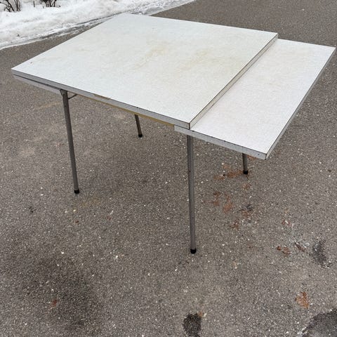 Pent brukt og solid kjøkkenbord selges. Sammenslått er bordets bredde 80 cm.