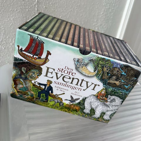 Lydbøker med norske eventyr til barn; serien Barnas Eventyrverden inneholder booklett med illustrert eventyr slik at barna kan lese selv sammen med å lytte til lydboken.