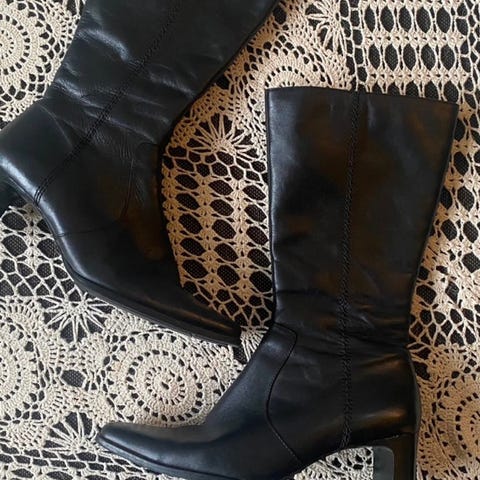Nydelige knehøye støvletter i skinn i en nydelig konjakkbrunfarge. Brukt en gang. Størrelse 38