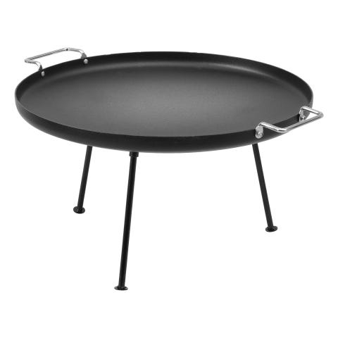 Settet inneholder også en varmvalset stekehelle med en diameter på 100 cm. Gassbrenneren har knotter med integrert tenning og tydelig merking som gjør det enkelt å vite hvor mye varme som fordeles over stekehellen. Varmen reguleres individuelt på de tre gassringene, noe som gjør at du kan lage forskjellige temperatursoner på stekehellen.