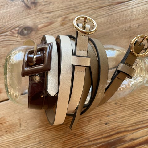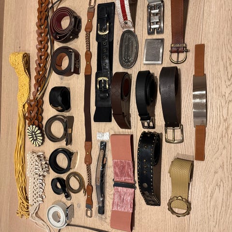Har noen belter i gult og sort med beltespenne preget med Licor 43