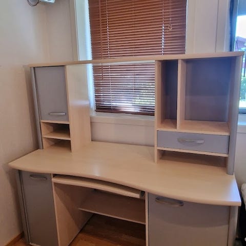 Brukt som pult. Høyde opp til skuff: 62 cm.